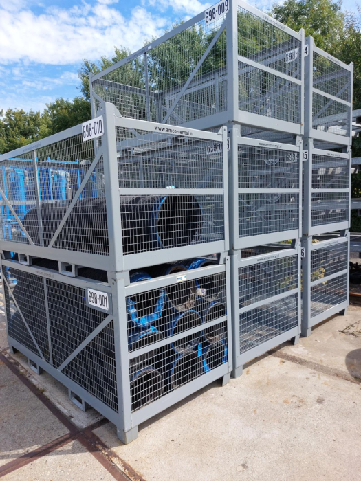 Wij hebben een nieuw transport/ opslagmiddel in gebruik genomen, namelijk een gaaskrat, zodat het vervoeren van stroomverlengkabels, stofafzuigslangen, luchttransportslangen en persluchtslangen op een veilige manier kan plaatsvinden op ons terrein/ magazijn of bij de klant op locatie.